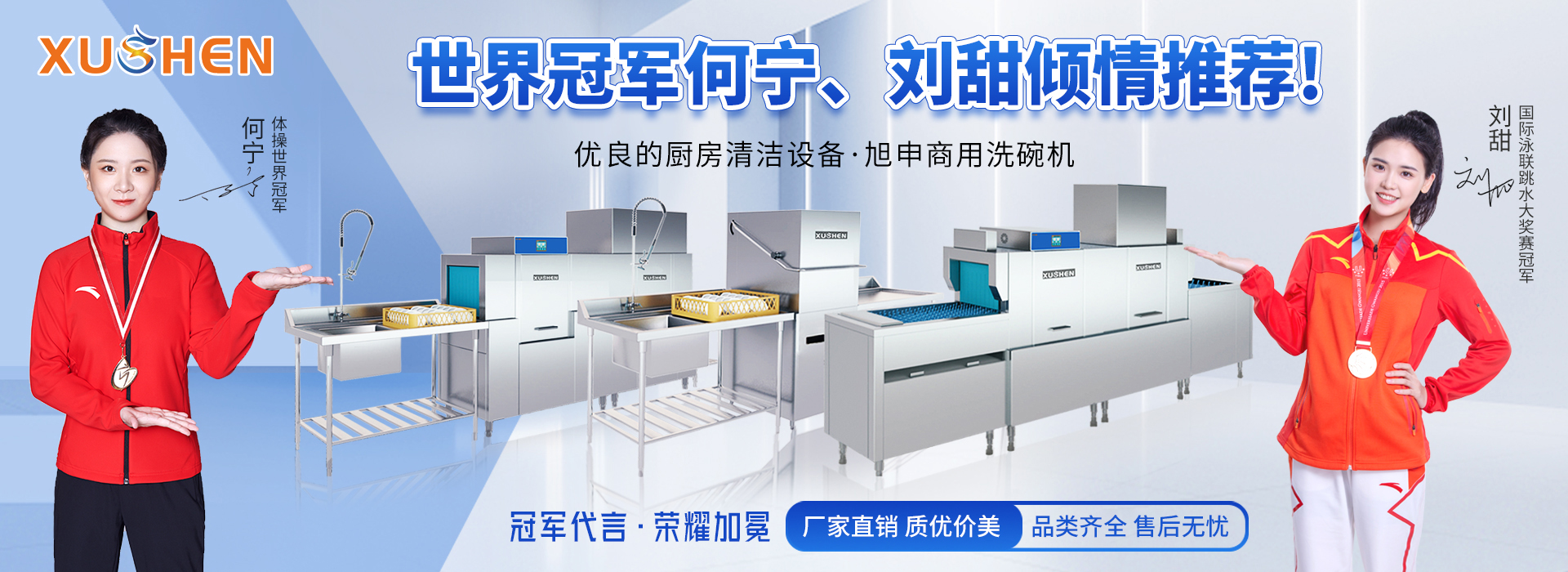 旭申長龍式洗碗機包括主洗+漂洗+烘干等模塊,功能齊全,一站式解決客戶餐具清潔的所有需求。